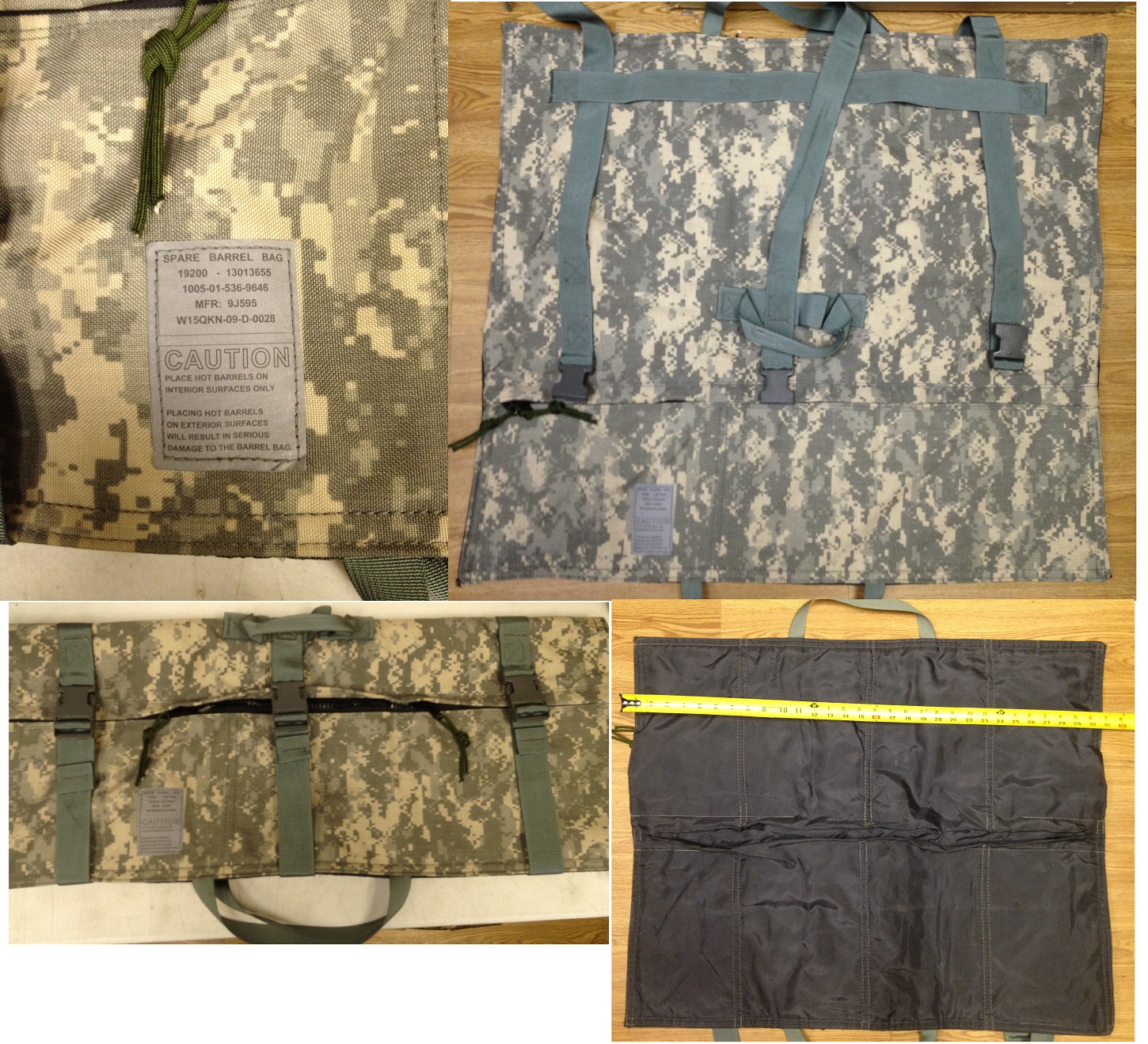 These bags are flame resistant, thermally insulated, spare barrel bag designed specifically for use with light machine guns.